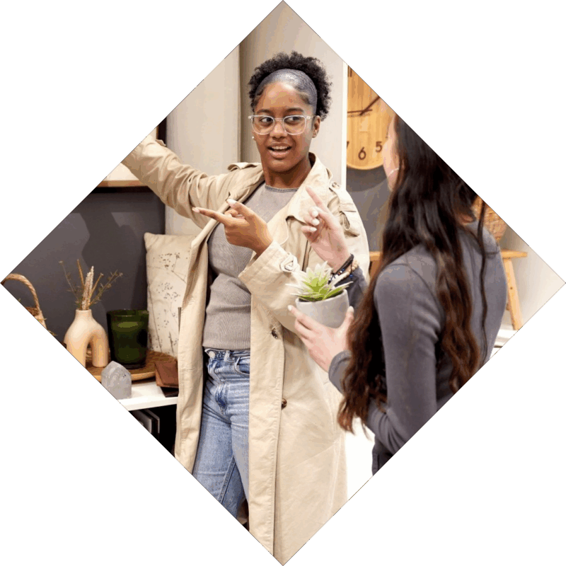 De omgeving waarin je les krijgt, lijkt zoveel mogelijk op de praktijk. Zo beschikken we voor de hout- en meubelopleidingen over een up to-date machinepark en eigen praktijklokalen. De praktijklokalen zijn meubelmakerijen, stoffeer- en timmerbedrijven in het klein. De werkplaatsen voor de interieuropleidingen lijken op woonwinkels, ateliers en studio’s. Hier vinden simulaties van verkoopgesprekken plaats, worden winkelpresentaties gemaakt en worden inrichtingen van woningen ontworpen. In het HMC-Lab kun je experimenteren met materialen en nieuwe technieken, zoals de lasersnijder, de 3D printer of de borduurmachine. In het Studiecentrum vind je een schat aan relevante boeken en tijdschriften die jou kunnen inspireren en op weg kunnen helpen om tot een mooi eindproduct te komen.