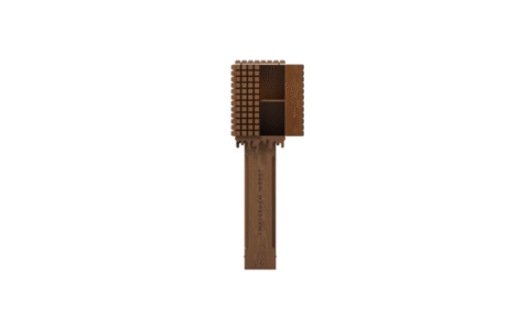 Het ontwerp is direct herkenbaar als een miniatuurversie van de A’DAM Toren. Strak, verticaal en met een krachtige silhouet. De karakteristieke ‘overstek’ van het dak komt terug in de koplijst, die een uitgesproken accent geeft aan de bovenkant van de kast. De kast is ontworpen als een statement: minimalistisch, stoer en met een duidelijke link naar de toekomst van Amsterdam Noord.