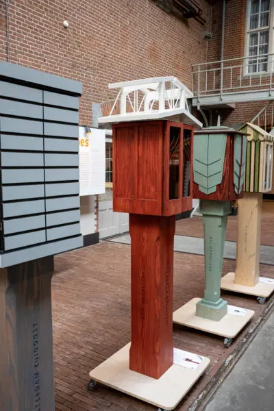 Ter ere van het 750-jarig bestaan van Amsterdam zijn acht unieke ruilkasten ontworpen en gerealiseerd – één voor elk stadsdeel. Deze bijzondere kasten zijn een cadeau aan de stad, ontworpen door ontwerper Sjoerd Vroonland en met zorg gemaakt door studenten en docenten van het Hout- en Meubileringscollege Amsterdam. Het geheel staat het symbool voor vakmanschap en stedelijke verbondenheid. In deze serie lichten we elke kast afzonderlijk uit: waar ze staan, wat ze bijzonder maakt en hoe ze bijdragen aan de sociale samenhang in de buurt. Ook benoemen we per kast het ontwerp, de functie en de gebruikte materialen uit – en laten we zien hoe elk ontwerp het karakter van het stadsdeel weerspiegelt.