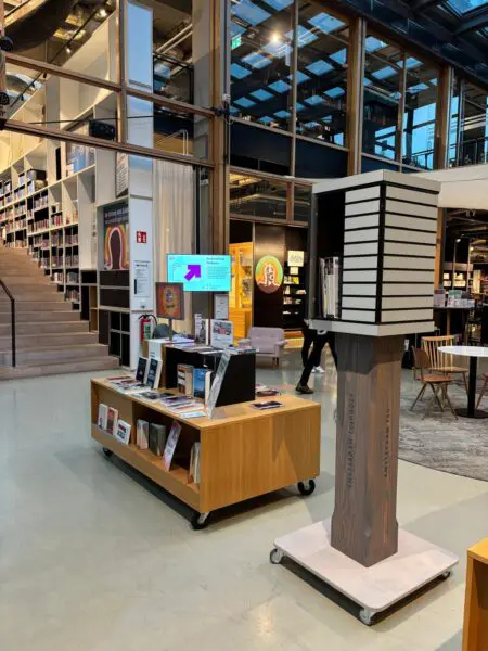 Nog net voor de kerstvakantie is kast Zuidoost door Sjoerd Vroonland, namens het HMC, overgedragen aan de OBA Bijlmer. Op deze prachtige locatie heeft de kast een prominente plaats midden in de centrale hal gekregen. Bij binnenkomst kan je er dan ook niet omheen.