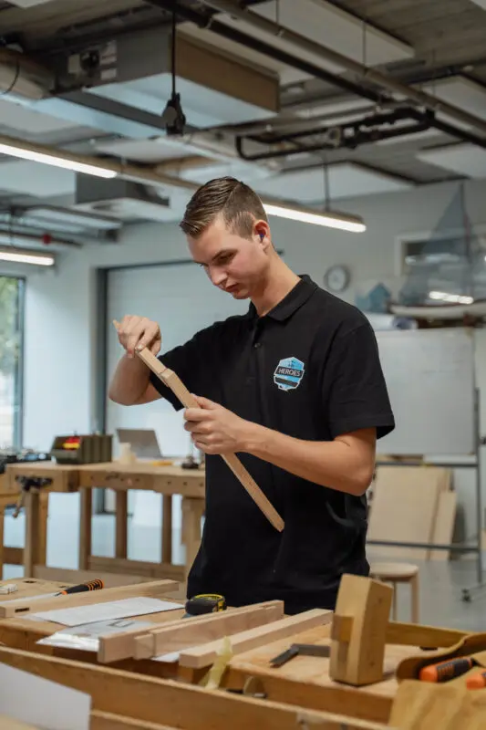 Op vrijdag 23 en zaterdag 24 januari strijden zo’n 12 studenten van verschillende mbo’s voor een plaats in de finale van Skills Heroes. De 12 studenten hebben zich geplaatst door hoog genoeg te scoren bij de voorrondes op hun eigen school en daarmee een plek in de kwalificatiewedstrijd verdient. Die wedstrijd wordt verspreid over twee dagen, waarvan er vrijdag zes studenten gaan strijden voor een finaleplaats en zaterdag de andere zes. Ze krijgen ieder vijf uur om aan de wedstrijdopdracht te werken. Dit betekent een lokaal waar had gewerkt wordt, onder tijdsdruk gepresteerd moet worden en de beste meubelmakers van Nederland zich onderscheiden. Een spannende wedstrijd en inspirerend beeld om te zien. Zeker ook voor bezoekers van de open dag!