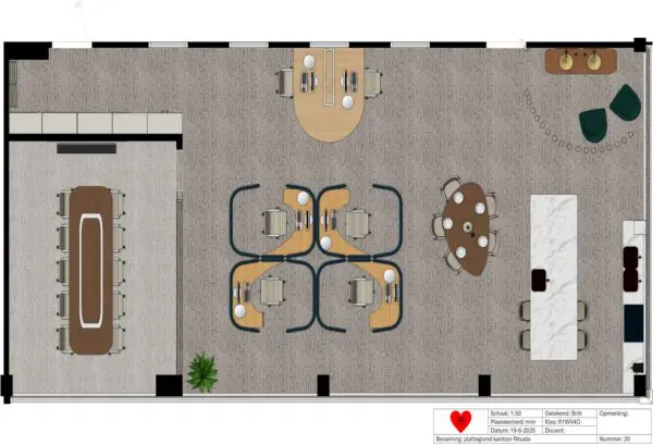 Mijn favoriete vak is zonder twijfel interieur, omdat dat ook precies de richting is waarin ik wil afstuderen en waar mijn passie ligt. Wat ik erg waardeer aan de opleiding, is dat deze heel breed is en je kennismaakt met verschillende kanten van het vak. Dat geeft veel mogelijkheden om te ontdekken wat echt bij je past. De opleiding is in grote lijnen zoals ik had verwacht, al moest ik wel wennen aan de grote creatieve vrijheid die je krijgt. Het project waar ik tot nu toe het meest trots op ben, is mijn Rituals kantoor project. Tijdens dit project heb ik mijn ontwikkeling in digitaal tekenen goed kunnen laten zien. Onderaan de pagina zijn de tekeningen te zien die ik voor dit project heb gemaakt. Alles kwam daar mooi samen in een compleet en professioneel ontwerp.
