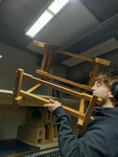 Een van de projecten waar ik het meest trots op ben, ontstond in leerjaar 2. De opdracht was om een eigen variant te ontwerpen op de bekende Carlton-kast van Ettore Sottsass. Wat me hierin aansprak, was de vrijheid: zolang bepaalde kenmerken behouden bleven, kon ik volledig mijn eigen richting kiezen. Ik ging nog een stap verder en ontwierp een kast zonder één rechte hoek. Het was technisch uitdagend en zeker niet makkelijk om te realiseren, maar juist daardoor heb ik er enorm veel van geleerd. Het resultaat is een uniek meubelstuk dat mijn creativiteit en doorzettingsvermogen goed weerspiegelt.